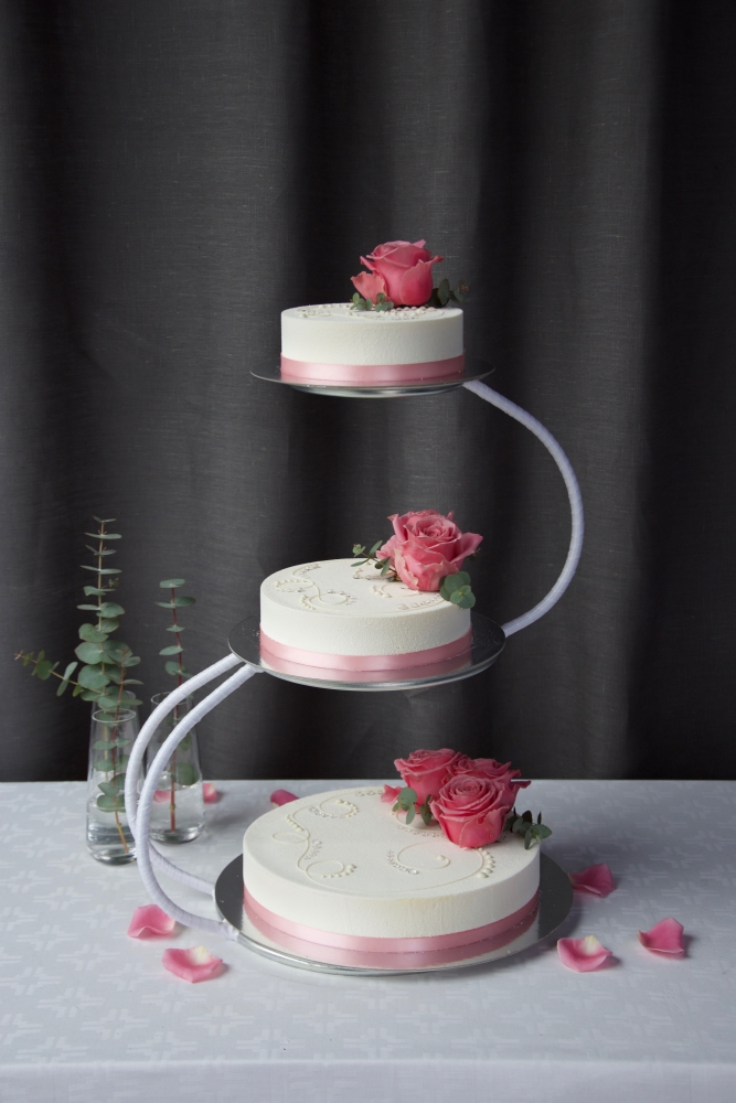 Bröllopstårtorna finns i olika utföranden, storlekar och med olika ställningar, mer information om de olika alternativen kan ni finna genom attklicka här!.